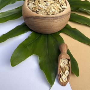 این گیاه دارای ساقههای متخلخل و برگهای بزرگ و تخت و تخممرغی شکل، دارای رگبرگهای برجسته و دارای دمبرگ های بلند هستند. اما قسمتهای پرکاربرد این گیاه، دانه، ریشه و برگهای آن میباشند که در طب سنتی استفاده میشوند.